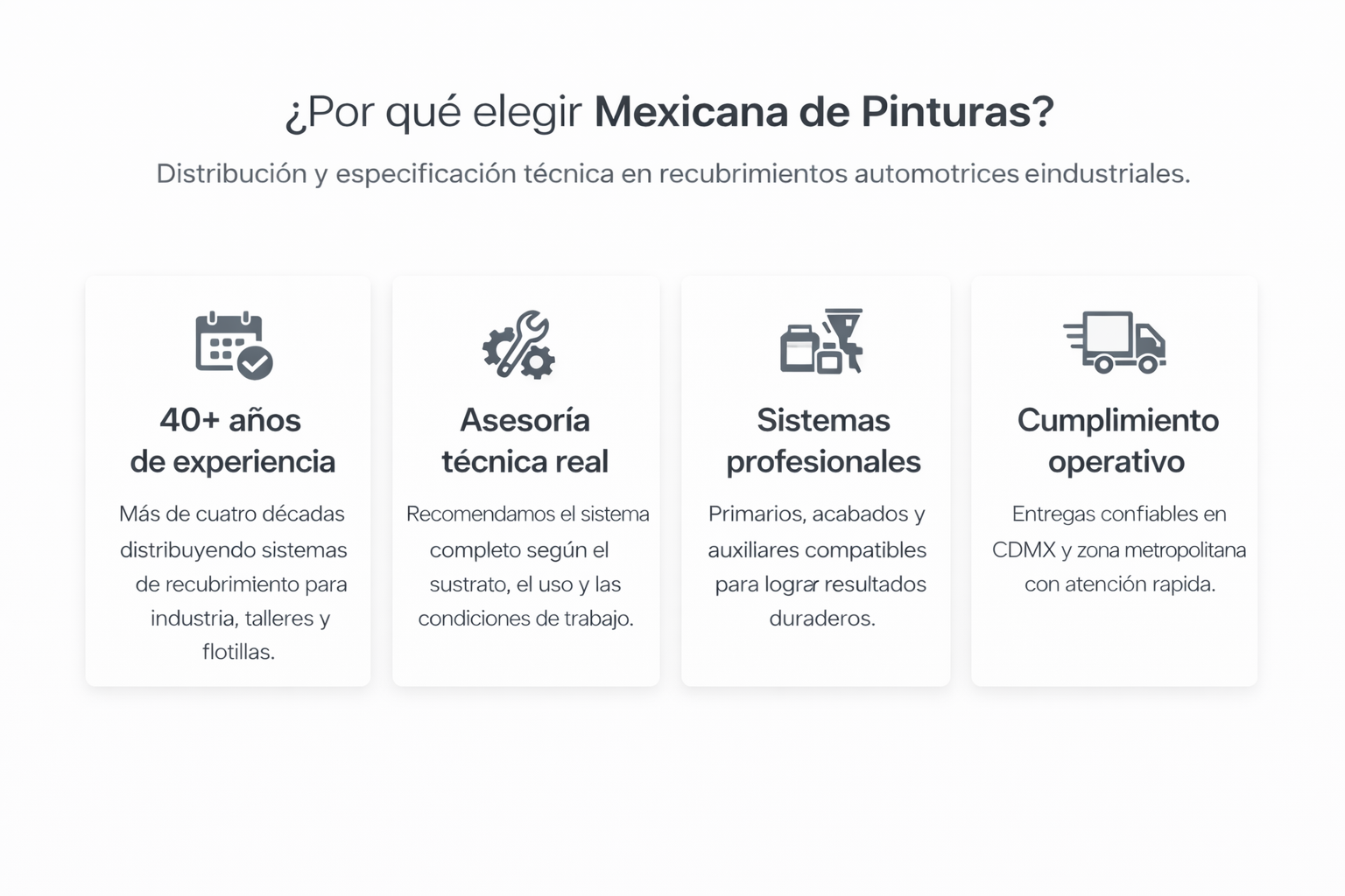 Mexicana de Pinturas cuenta con más de 40 años atendiendo cuentas clave y proyectos exigentes con enfoque técnico.